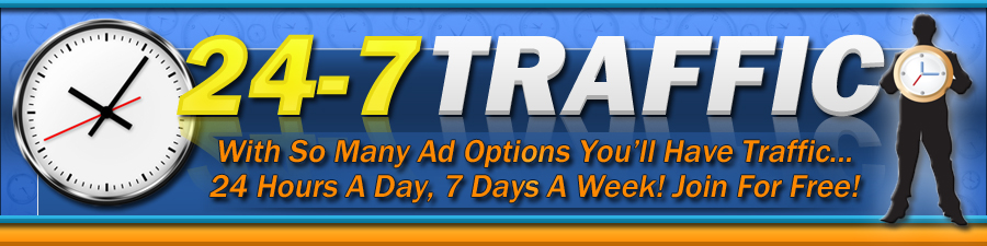 24-7 TRAFFIC We Have: Super Solos Solo Ads Premium Ads Full Page Login Ads Hot Links Banner Ads Surf For Points Email Your Referrals 10 Levels Deep And A Whole Lot More! New Members Use Code: newmember for: 10,000 Points, 4 Solos, 4 Banners, 4 Traffic Links, 1 Login Ad. Struggling